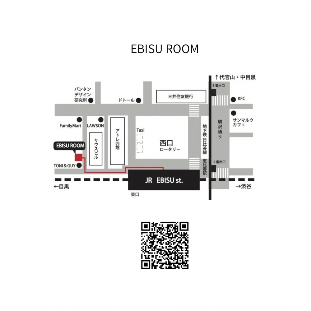 JR恵比寿駅改札から2,3分のEBISUROOMです。